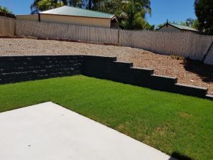 Another Favourite was this modern and low maintenance backyard landscape build from Albany Creek. We came in on day 1 to make a clean slate, we excavated the site to create a flat, solid foundation to start our build. First step in the new landscape project, was to build a new fence and mark up the space for our new retaining wall. We built the retaining wall at the back of the property to add dimension to the yard, assist with drainage issues to the property and make it look good in a sold black. We finished off the low maintenance of this back yard with a concrete slab and laid a small section with some lush green turf.